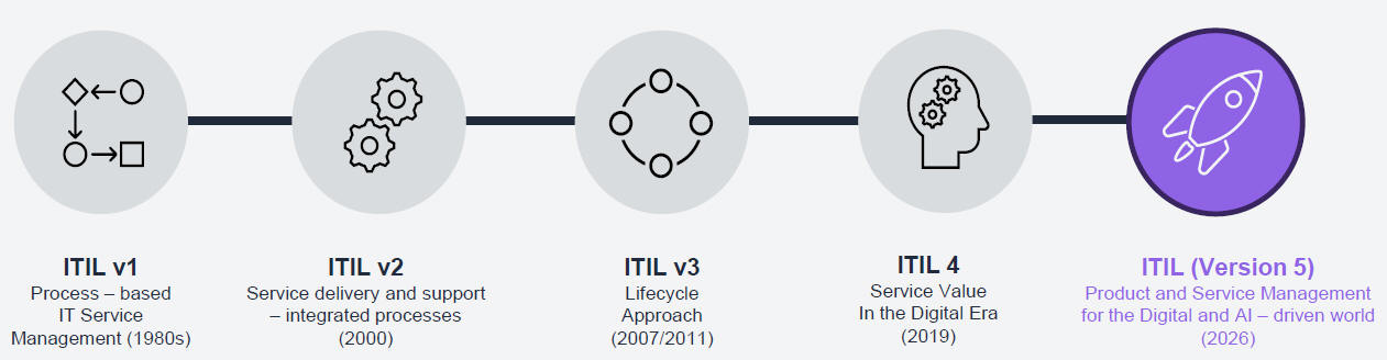 PeopleCert nimetab uut versiooni evolutsiooniks, mitte revolutsiooniks. Ühelt poolt soovitakse kaasas käia meie ülikiiresti muutuva AI-maailmaga ja teiselt poolt säilitada ühilduvus varasema versiooniga, mis tagaks klientidele seniste koolitusinvesteeringute kaitse. Näiteks ITIL 4 Foundation sertifikaadi omanikud ei pea uuesti versioon 5 Foundation kursusele minema ja nende sertifikaat kehtib võrdselt versiooni 5 sertifikaadiga.
